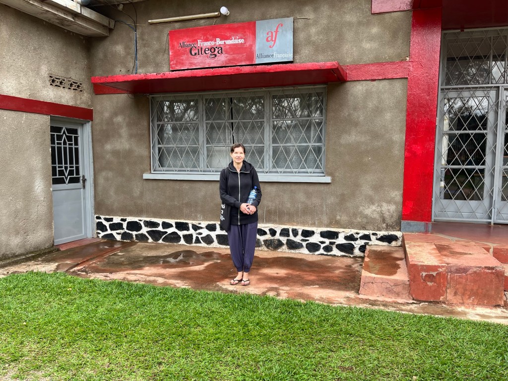 Pöytää tai tuolia toimistolle ei muuten ole vielä hankittu, koska tällä viikolla teimme töitä pääosin Gitegan keskustasta Alliance Franco-Burundaise -kulttuurikeskukselta. Siellä saa reilun kuuden euron vuosimaksulla hyödyntää wifiä, joka ehkä useimmiten toimii. Lisäksi voin lainata kirjoja keskuksen kirjastosta.