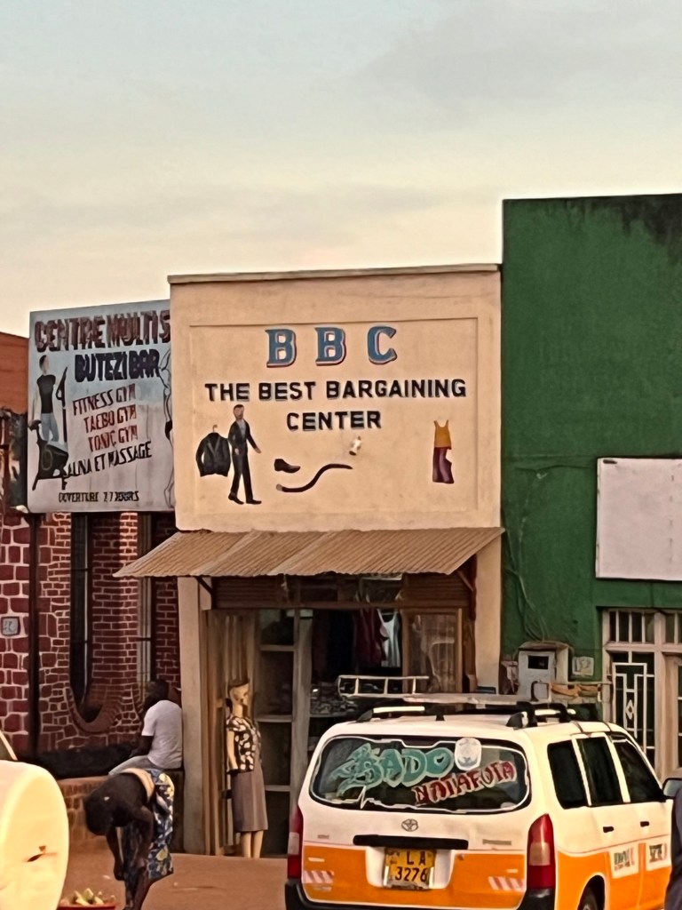Myöhemmin ymmärrän, että kuski luultavasti keskustelee asiakkaan kanssa. Saimme jaetun taksikyydin tavallista edullisemmin (vajaa 7 euroa per nenä), koska auton takaosa on ahdettu tiukkaan ja täyteen laatikoita, paikallista banaaniviiniä. Toyota Probox täynnä bokseja, niin sen varmaan kuuluukin olla. Lähtiessämme Bujumburasta olin nähnyt erään Proboxin, jonka takaosa oli täynnä yksittäisiä tomaatteja. Täkäläisten teiden kunnon tuntien ideana oli ehkä valmistaa edullisesti tomaattimurskaa.