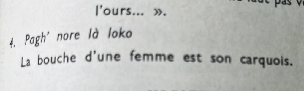 Précis d’histoire de la Haute Volta -kirja on julkaistu 1960-luvulla, ja se on ilmeisesti tarkoitettu koululaisten oppikirjaksi. Tyyli on luettelomaisena raskassoutuinen, mutta tekstin seassa on hienoja kuvituksia sekä lukujen alussa aina muutama ylävoltalainen sanonta. Suosikkini oli ”Naisen suu on hänen nuoliviinensä”.