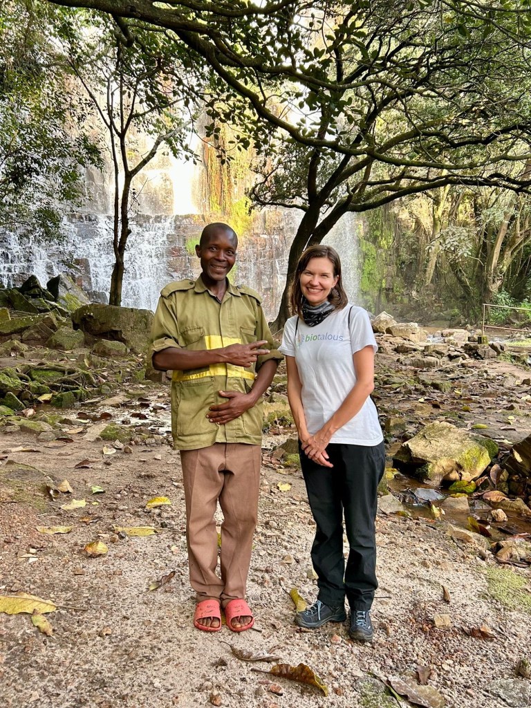 Nyakazusta ajelimme pottupeltoa pitkin takaisin ja kilometreissä lähelle Kareran putouksille. Siellä portilla auton takaosaan tavaroidemme sekaan hyppäsi työlleen selvästi omistautunut paikallinen opas Anicet, joka toi Elinalle ja minulle mieleen Rillit huurussa -sarjan Sheldonin. Hän tunsi putoukset hyvin, sillä luetteli niiden nimet ja järjestysnumerot meille moneen kertaan. Minulta ne menivät joka kerralla ohi, koska pystyin keskittymään vain hänen vangitsevaan olemukseensa.