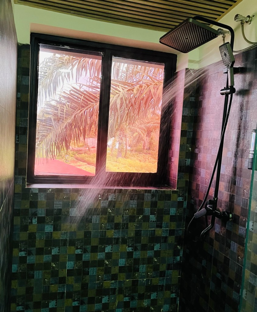 Mutta uskoa kysyntään ilmeisesti löytyy, sillä meidät majoitettiin upouuteen Cliff-nimiseen rakennukseen. Olimme molemmat hämmentyneitä ja hämmästyneitä rakennuksen tyylistä ja laadusta. Yksikään ruuvi tai pultti ei ollut löysällä, ilmastointi toimi, wifi oli luultavasti mallia Starlink, sisustus oli eurooppalaisen eleetön, kylpyhuoneessa tyylikkäät mustat suihku- ja allaskalusteet sekä valolla varustettu peili, johon jäi (lämpimän!) suihkun ottamisen jälkeen keskelle kätevästi pään muotoinen pyöreä huurustumaton alue.
