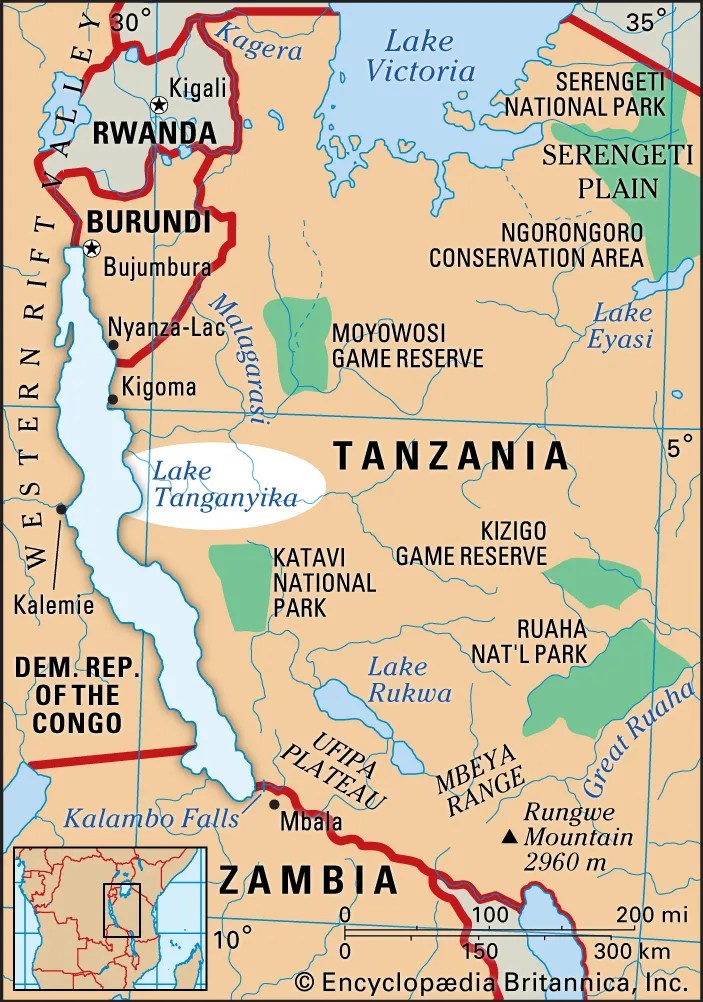 Tanganjika on pinta-alaltaan Afrikan toiseksi suurin järvi. Sen syvin kohta kurottaa 1436 metriin, joten se on Afrikan syvin ja maailman toiseksi syvin järvi. Vertailuksi: Suomen syvin järvi, Päijänne, ulottuu 95 metriin ja Itämeri läntisellä Gotlannin altaalla 459 metrin syvyyteen.