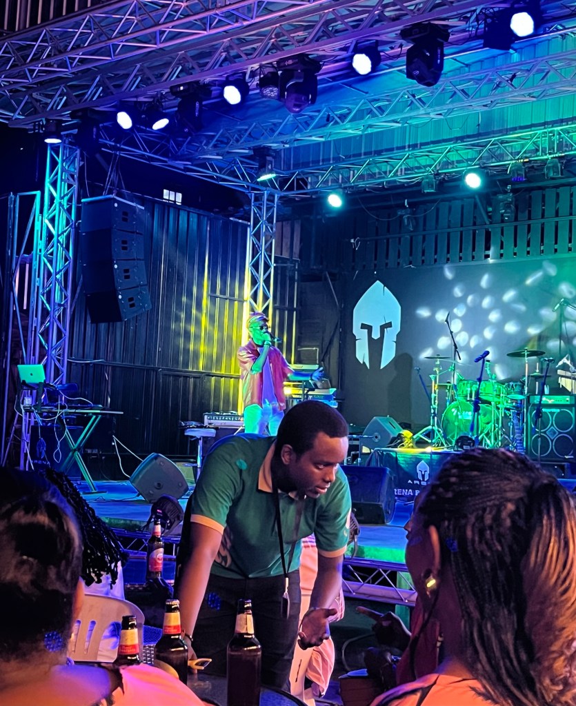 Myös kulttuurikeskuksella Romainella oli paljon tuttuja, onhan hänellä kokemusta niin keskuksen teatterikerhosta, slam-runoudesta kuin toimittajan työstä. Instituutin baaarissa ehdimme keskustella hetken burundilaisen journalismin tilasta ja yrittäjyydestä, hörppiessämme luomuananasmehua, jonka muuten uskon olleen peräisin Aimén tilalta. Mutta pian matka jo jatkuikin Arena-ravintolaan illan kruunanneeseen naistenpäiväkonserttiin.